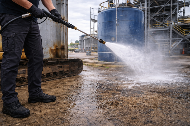 We clean larg warehouses and factories with strong Pressure washing. Our team washes away oily mess and dirt from floors and loading areas. We make your workplace safe and looking like new. Hard dirt can cause slips, so we scrub it all away. We help you keep your building clean and ready for hard work every single day.