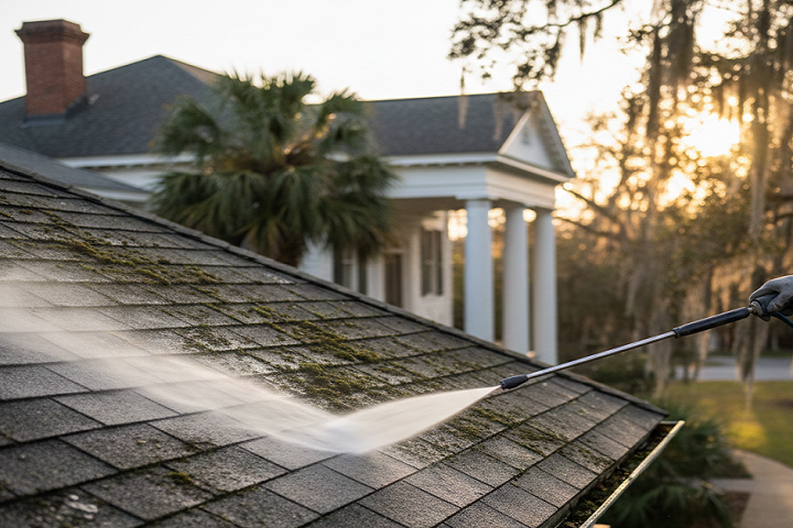 Our roof cleaning service removes black streaks, moss, algae, and roof stains that make shingles look old. We use roof soft washing instead of harsh pressure so your shingles stay safe and strong. A clean roof helps your home look better and can extend the life of your roofing system. Roof washing also helps stop harmful growth from spreading.